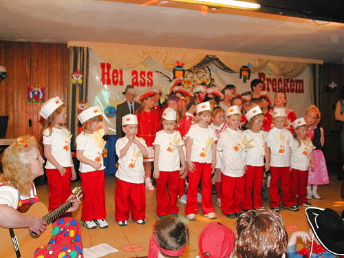 Valentinstag im Breckemaland, und die kleinen Breckemamänchen waren außer Rand und Band. Pünktlich um 15.11 Uhr zogen die kleinen Breckemamäncha in die Narrhalla beim Stolda ein. Die Narrhalla war bis auf den letzten Platz gefüllt, und wo man auch hinschaute wuselten die kleinen Narren durch die Gegend. Mal als Zuschauer, mal als Aktive bei Tanz oder Redevorträgen, oder einfach nur um sich schon einmal einen Eindruck von den Brettern, die die Welt bedeuten im Breckemaland zu machen. Im fast dreistündige Programm behielten in diesem Jahr zwei junge Damen, Kati und Janna, den Durchblick und verloren nie den so wichtigen roten Faden. Neben den zahlreichen und klasse Vorträgen, den Tänzen und Sketchen, brillierte wieder die kleine Funkengarde der Breckemamäncha mit einem tollen Funkentanz, und einem stimmungsgeladenem Showtanz. Dies erfreute auch die große Funkengarde und den komplett erschienenen Elferrat der Breckemamäncha, und man war sich einig das keine Nachwuchssorgen in den nächsten Jahren auftreten werden. Herzlichen Dank sagen möchte der Vorstand auch allen Eltern, die sich wieder selbstlos für die Durchführung und Ausführung der Kindersitzung der Breckemamäncha eingesetzt haben, und so Ihren Schützlingen tolle Momente und Erfahrungen beschert haben, den Narren im Saal frohe Stunden gebracht haben, und die so wichtige Nachwuchsarbeit geleistet haben. Bei allen Narren des Breckemalandes möchten wir uns für die tolle Unterstützung, die Sie mit dem Besuch der Sitzung geleistet haben, danken. Wie schon im letzten Jahr sorgte Wolfgang Berens aus Meisburg für die musikaliche Unterstützung während der Sitzung, auch hierfür herzlichen Dank. Im Anschluss feierte Groß und Klein noch einige Stunden in der Narrhalla beim Stolda, getreu dem Motto "Freunde trifft man, und Freunde treffen sich in Deudesfeld".