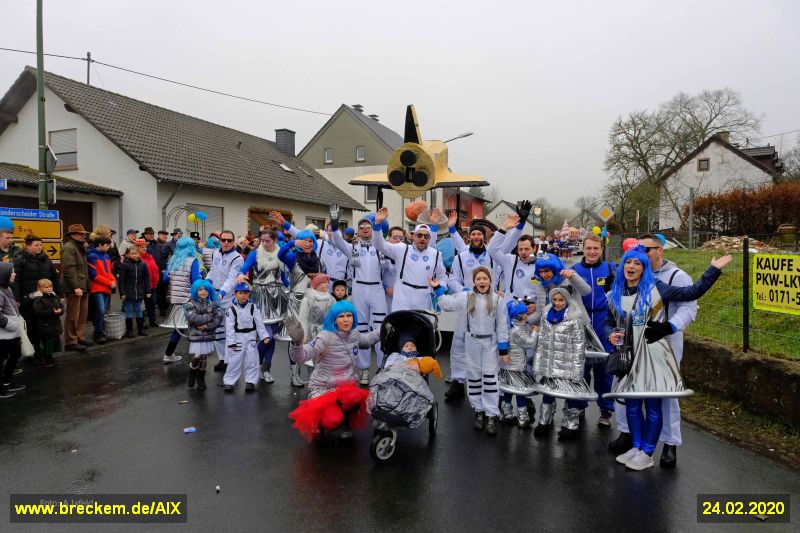 Bericht TV/25.02.2020: [Alwin Ixfeld] Die Deudesfelder Breckemamäncha sind an Rosenmontag mit sieben Wagen und sechs Fußgruppen auf Tour gewesen. Die rund 200 Teilnehmenden sorgten mit Süßigkeiten und Getränken dafür, dass die Zuschauer ihren Spaß hatten. Die waren trotz Regenwetters zahlreich gekommen und konnten ein Spaceshuttle bestaunen, das den Biomüll zum Mond bringt, Legomännchen als Superhelden oder stilecht gekleidete Mary-Poppins-Darsteller mit Ford T-Modell und dazu jede Menge andere gut gelaunte Gestalten.
